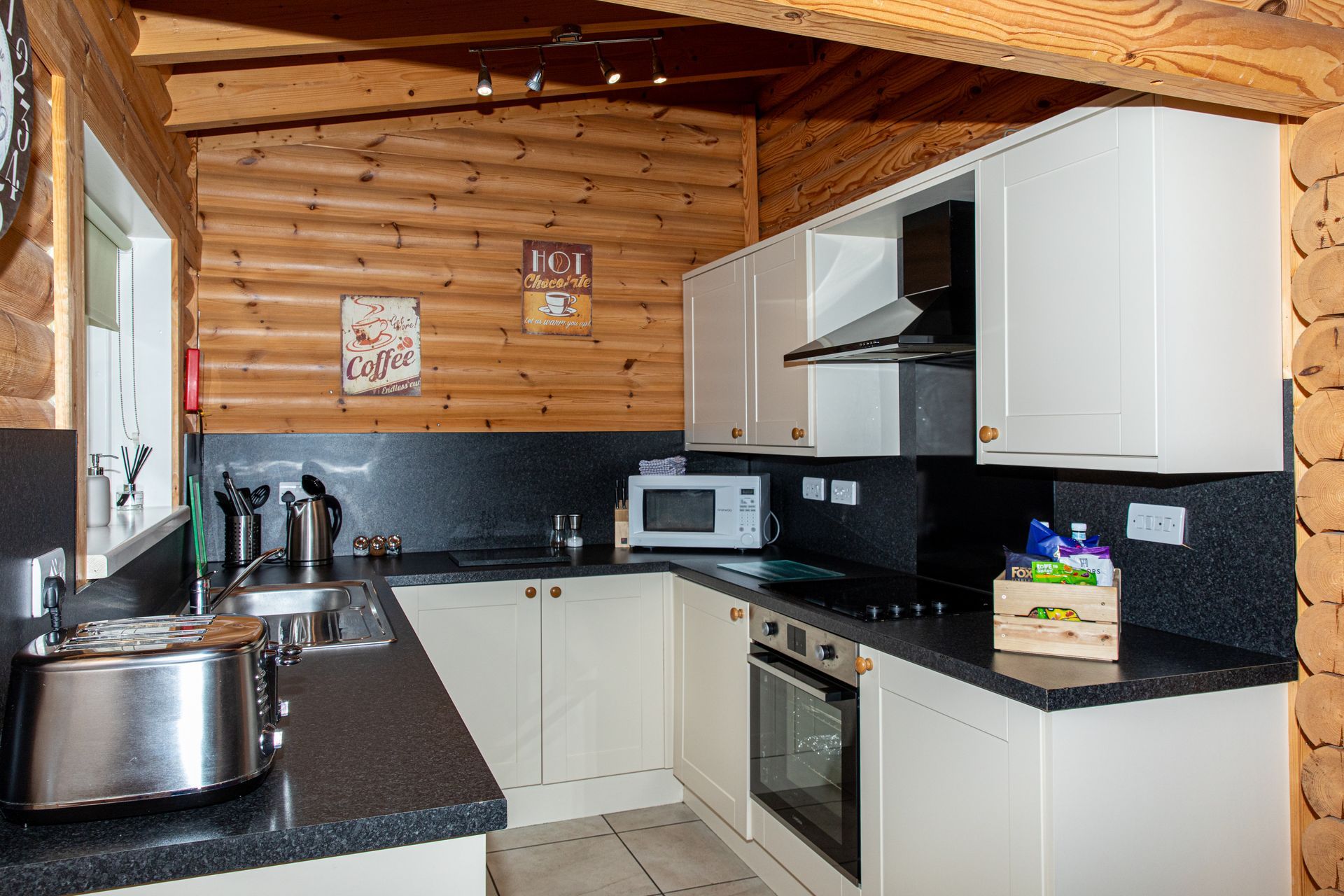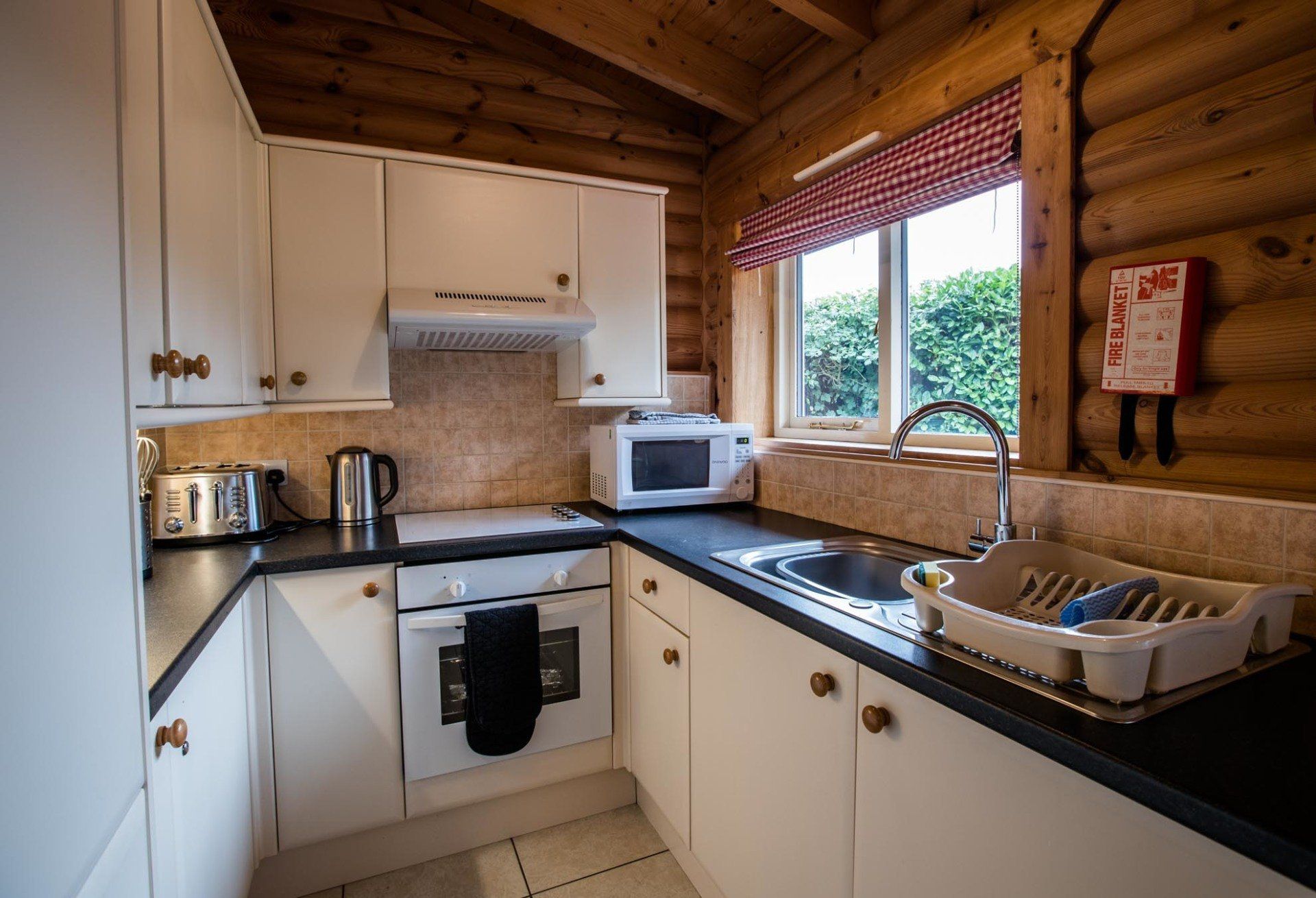 This holiday lodge has an accessible kitchen and extra wide doors for the front door, bathroom and twin bedroom.