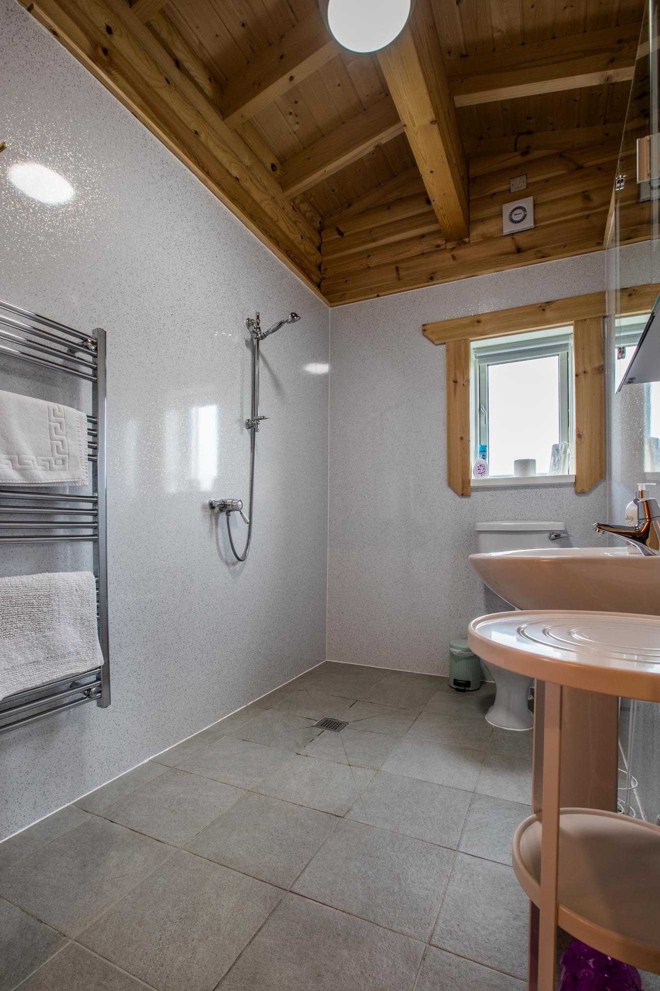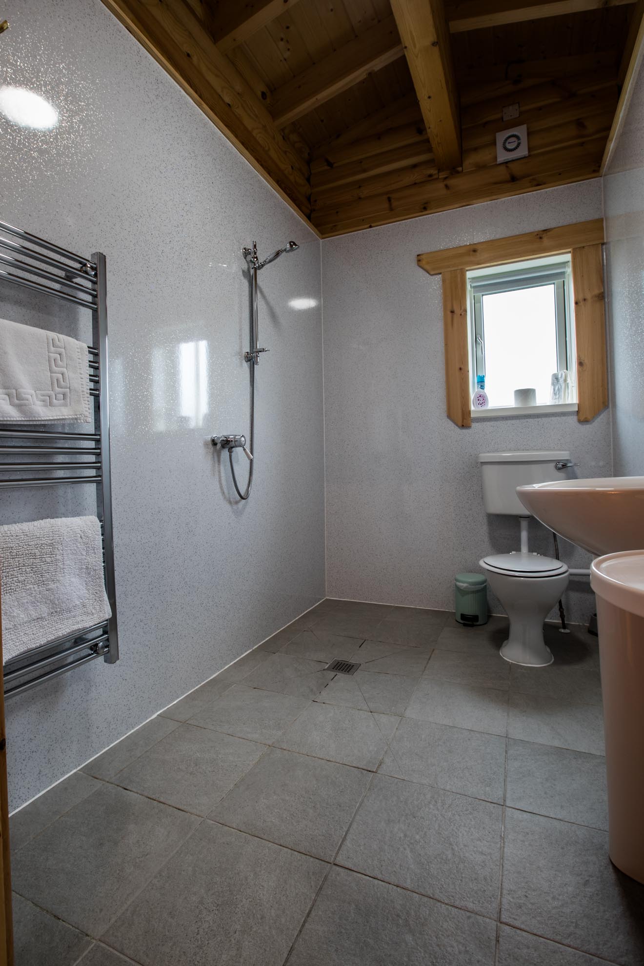 The bathroom is a wet room, on request we can supply additional mobility equipment, please ask for further details.